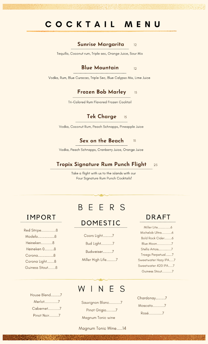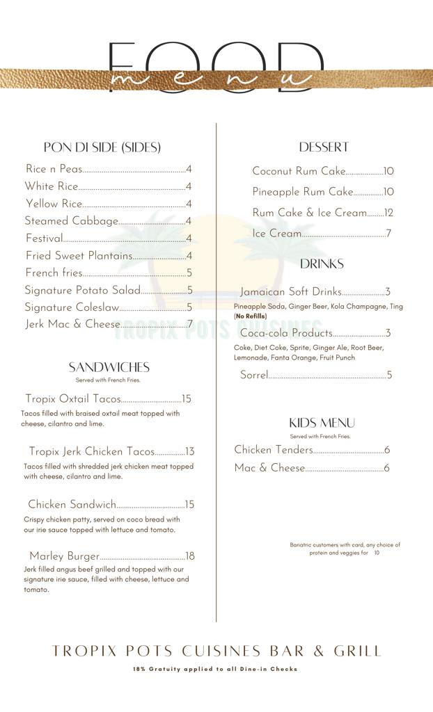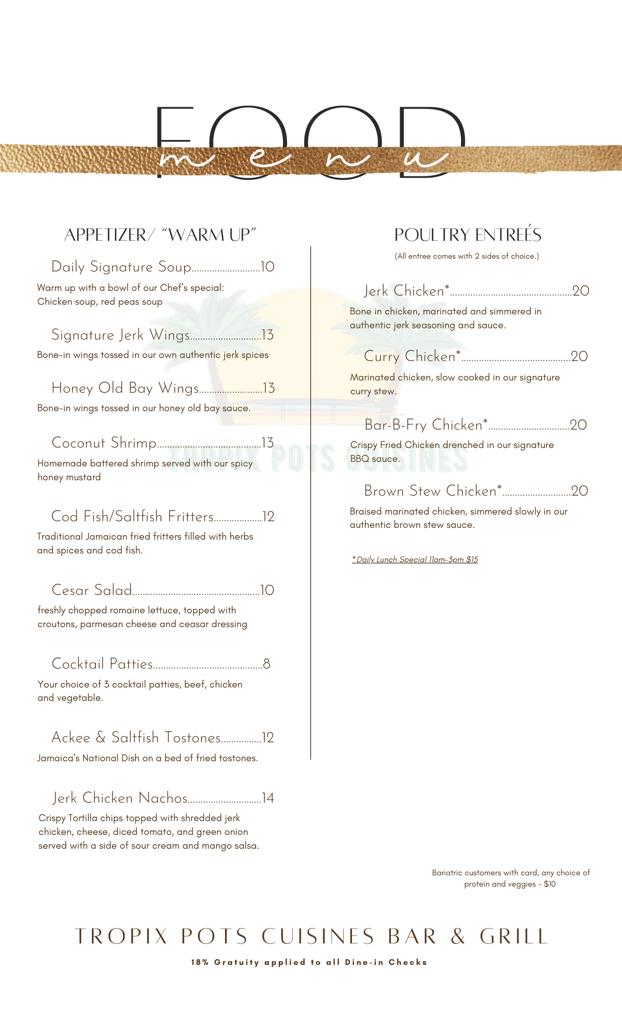 Welcome to Tropix Pots Cuisines Bar & Grill - Caribbean Authentic Cuisine, a culinary gem nestled in Frederick, MD, where the vibrant flavors of the Caribbean come alive. This cozy spot serves up a tantalizing menu that showcases the best of Jamaican cuisine, including must-try dishes like the Jerk Salmon and Escovitch Snapper, offering a delightful blend of spices and grilling mastery!